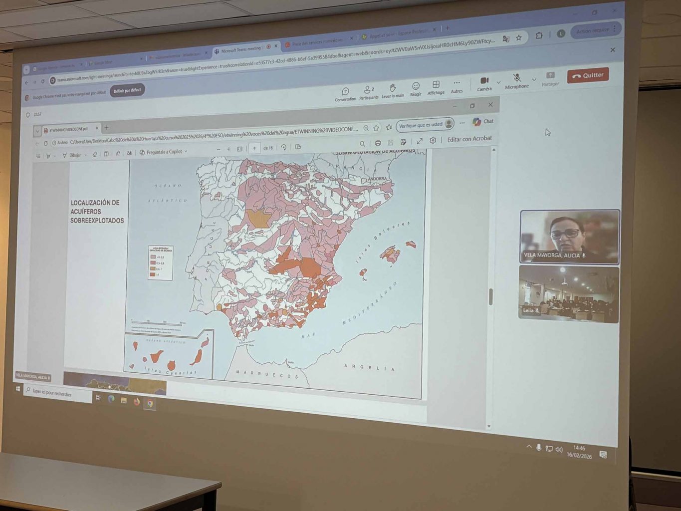 Dans le cadre du projet eTwinning « Voix de l’eau: de la source à l’avenir » mené avec 3 lycées espagnols (à Albacete, Alicante et Pampelune) et un lycée de l’île de la Réunion, les élèves de 2nde 3 et 2nde 5 puis les élèves de Tle 6 ont eu la chance d’assister le 16 février à une vidéo-conférence avec une hydro-géologue espagnole, Alicia Vela Mayorga. Les élèves, dans ce projet pluridisciplinaire espagnol-SVT, ont pu découvrir quels étaient les enjeux de la pénurie d’eau en Espagne et les impacts écologiques. Les questions environnementales, économiques (enjeux pour les agriculteurs), démographiques (exode rural), et politiques ont été abordés. Un travail qui continuera en SVT et en espagnol avec des travaux collaboratifs entre élèves français, espagnols et réunionnais.